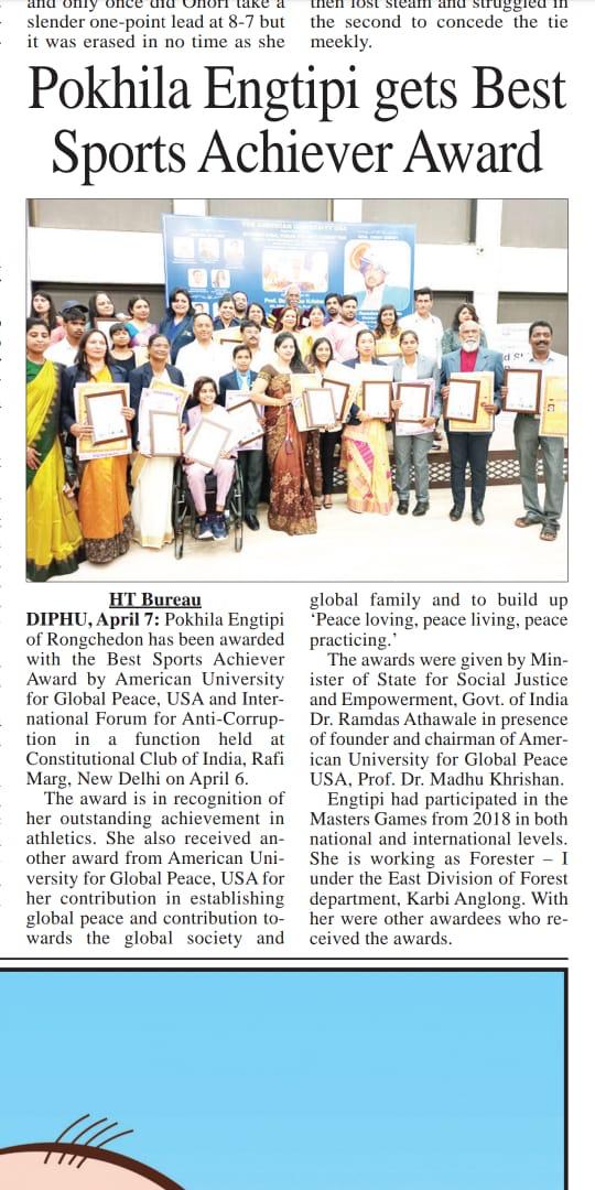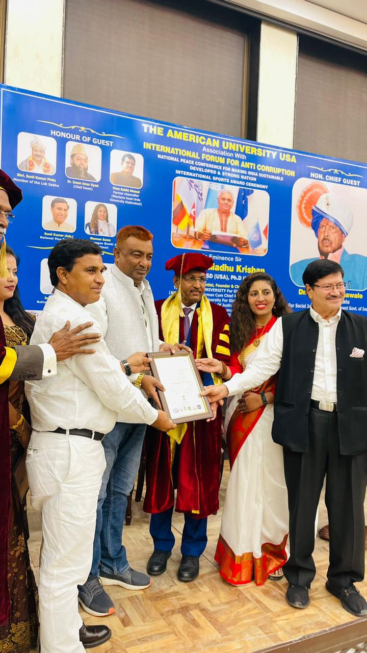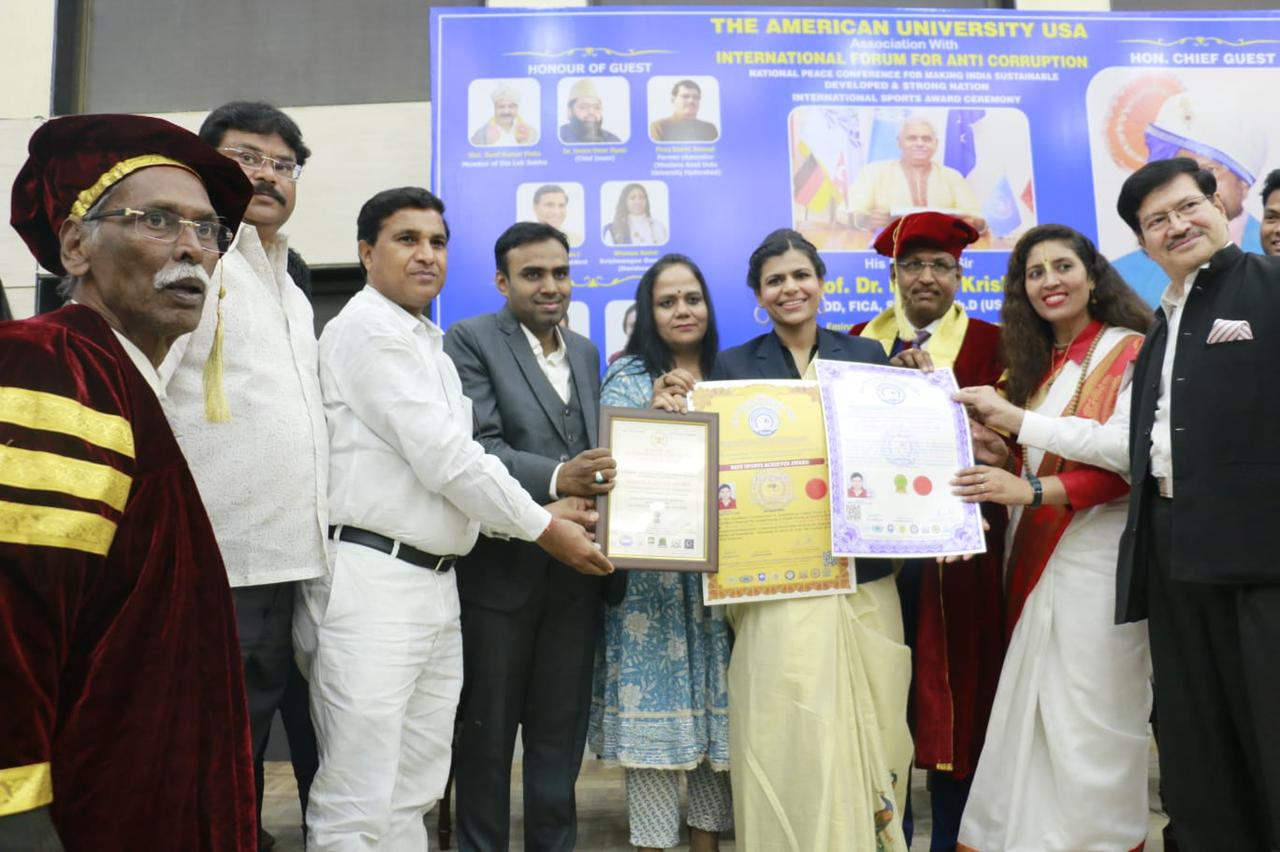 16 Sportspersons from over all Country were honoured by Honourable Sri. Ramdas Athawaleji, Minister for Social Justice and Empowerment, Govt of India and American University, Governor and renowned personalities of India with National and International Awards.