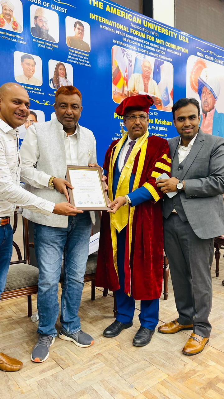 Dr Tousif Pasha honored Prof Dr Mayank vats as SDG Ambassador for International Anti Corruption Forum . This forum is already operating in 5 countries and with the vision to expand it internationally and to make the world corruption and financial crime free.
