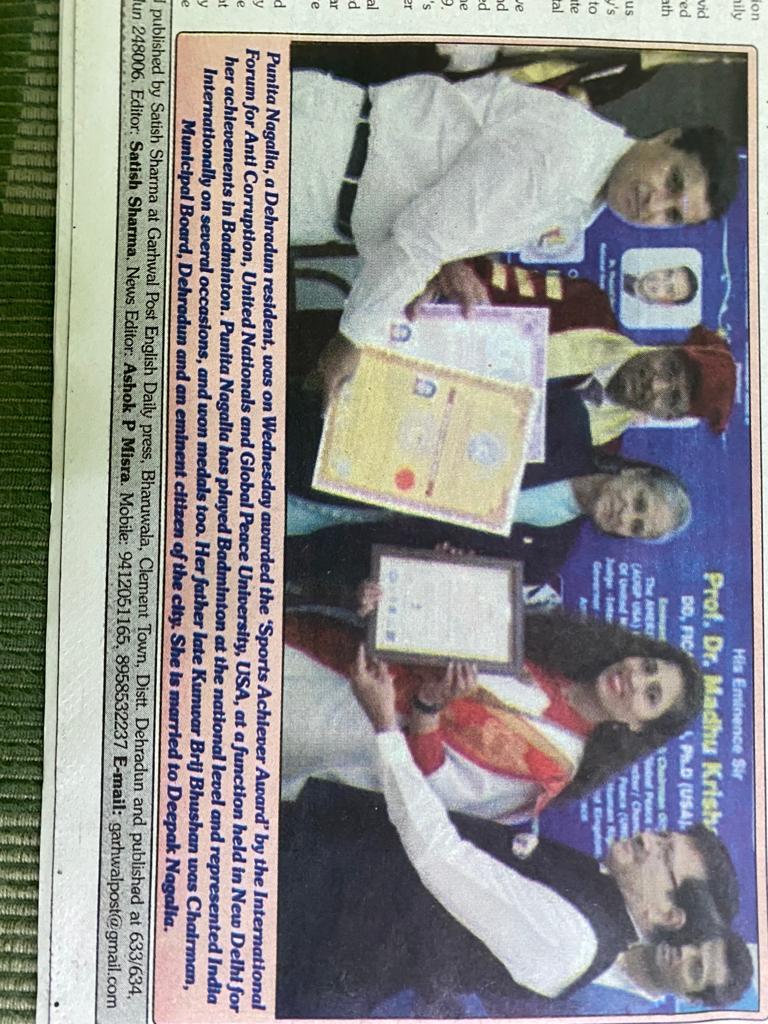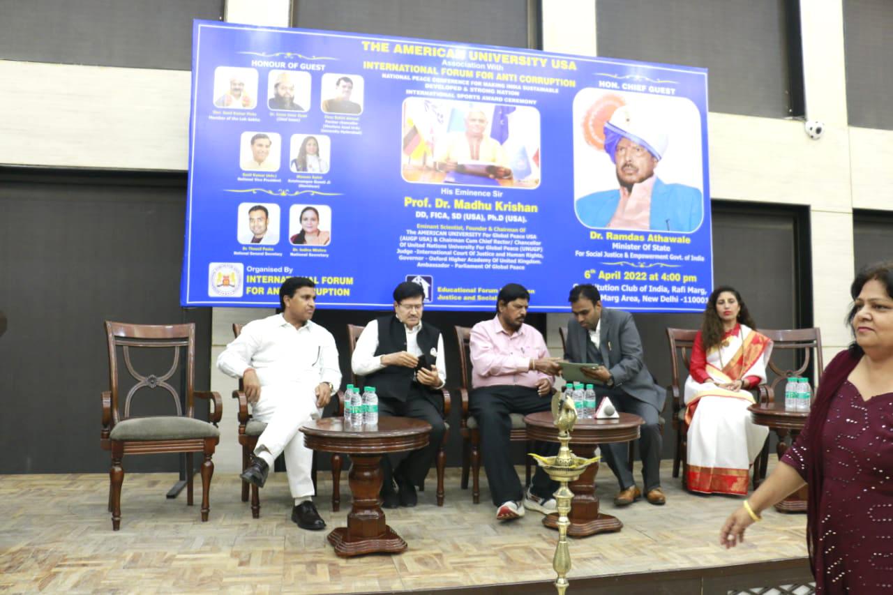 On behalf of the International Forum for Anti-Corruption and American University for Global Peace, USA on April 06, 2022 the International Sports day, a prodigious event was conducted in Constitutional Club of India, Parliament, New Delhi.