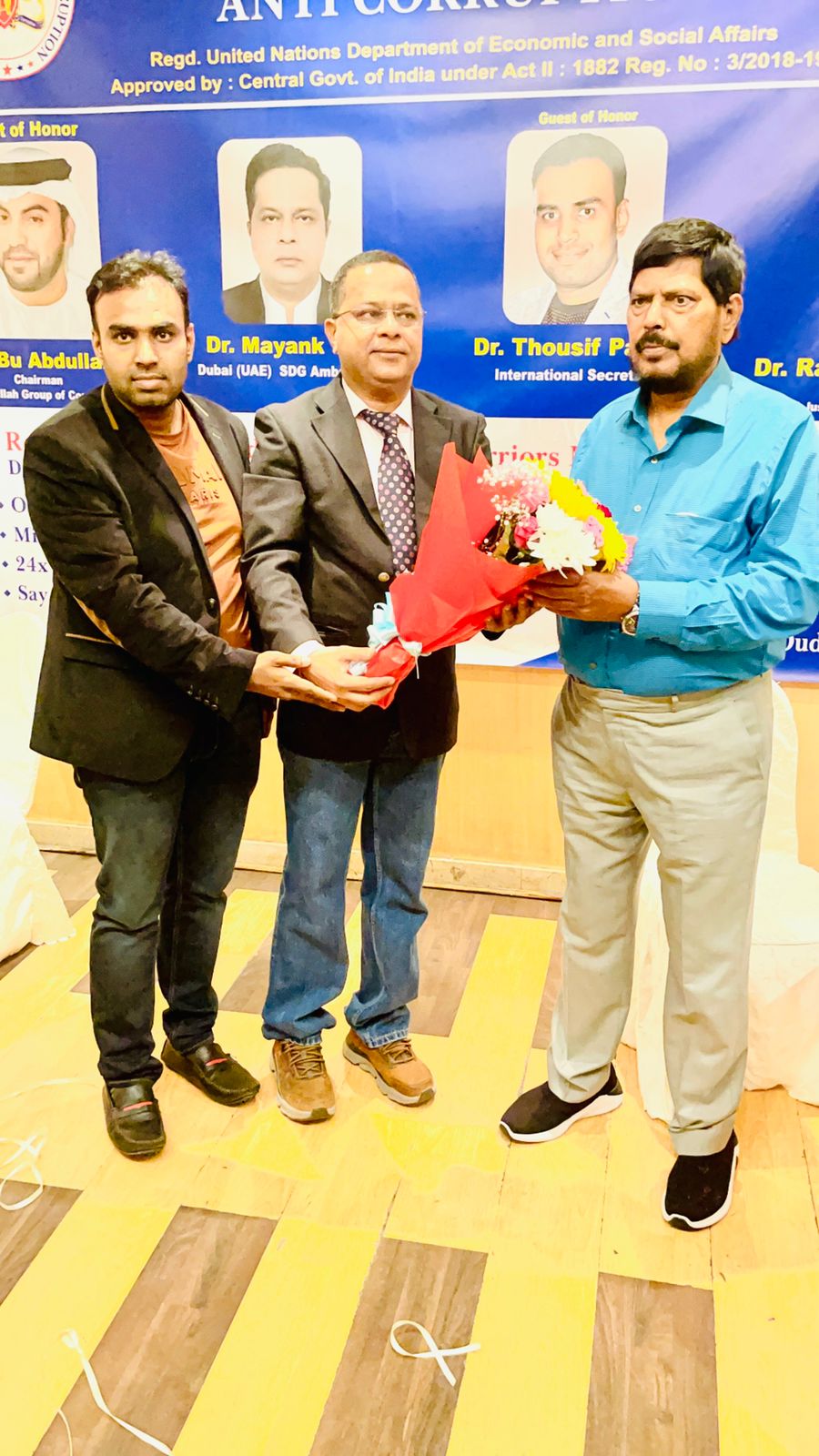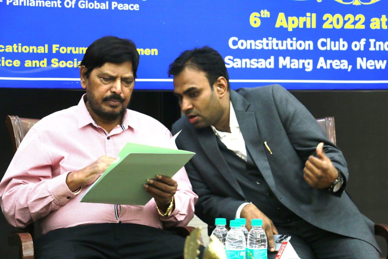 At India club His excellency Shri Ramadas athawale , cabinet minister of social justice and empowerment, India and His Excellency Dr Bu Abdullah, chairman of Bu Abdulla group of companies and eminent Lawyer in Dubai,