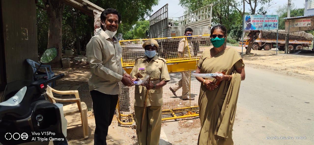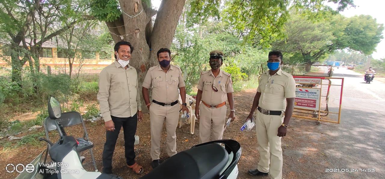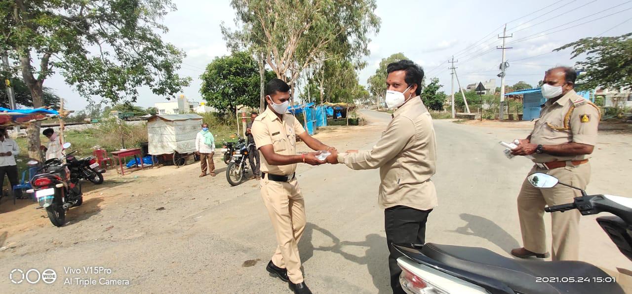 On behalf of International Forum For Anti Corruption Mr. Ravi Kumar Org.Secretary Karnataka state distributed Sanitizers, Masks & Face Shields to Police Staff in Bangarapet town & Kamasamudram Village, Kolar District , Karnataka, India For those who are working as Front Line warriors during Lock Down and in this Pandemic situation Covid 19.