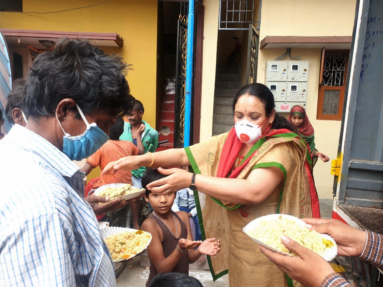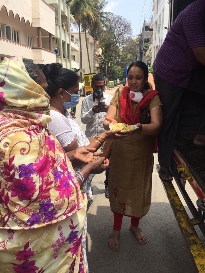 Dr.Anupama Shridhar, Karnataka State President Women's wings with her team distributed and Served food for more than 300 people's in Wilson Garden, Bengaluru on behalf of International Forum for Anti corruption.