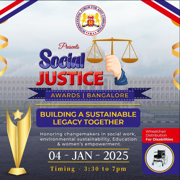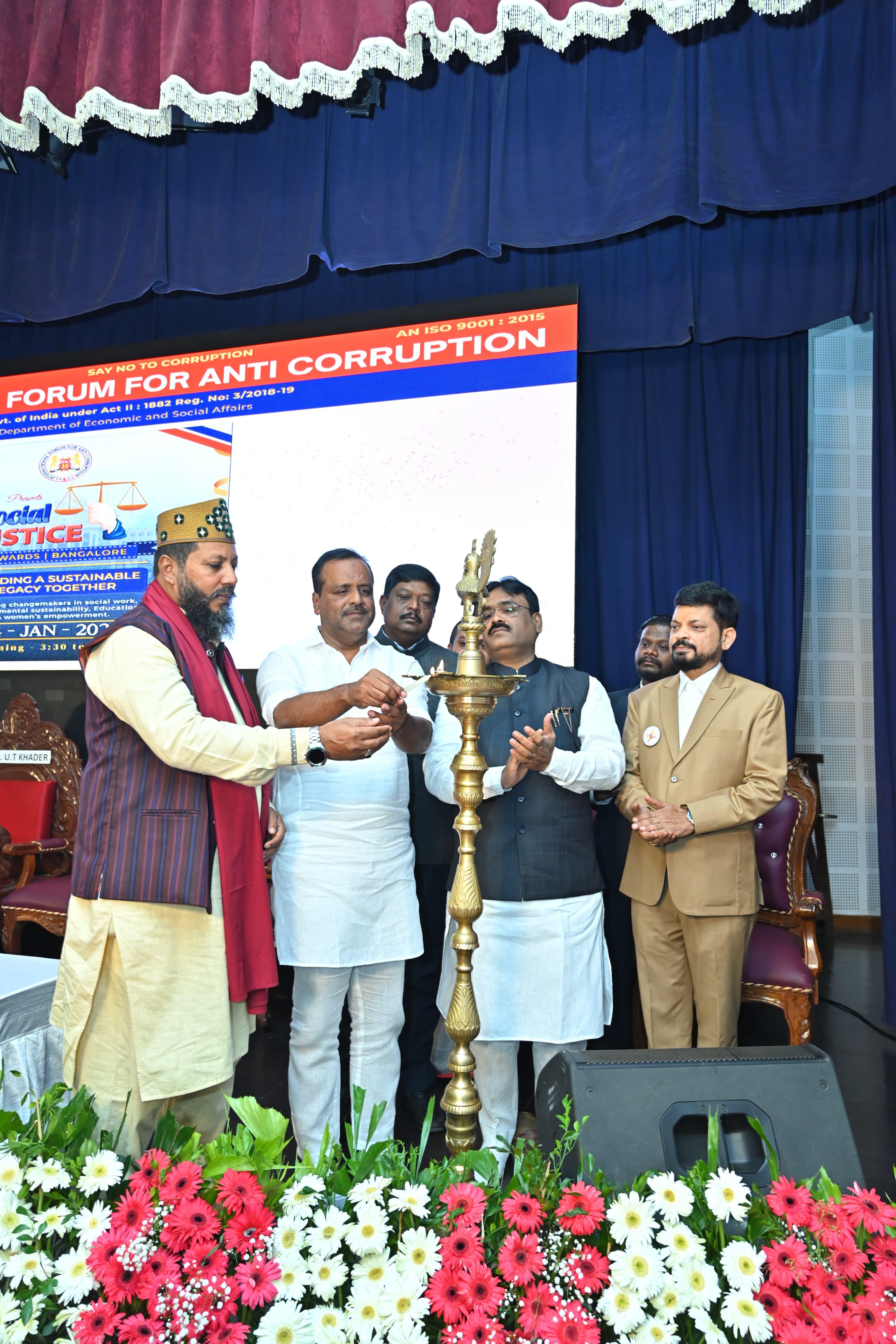 Awareness Programme on International Anti corruption day & World Human Rights day merged and organized a Programme on 23/12/2019, by International Forum for Anti corruption at Gandhi Bhavan, Bengaluru. Chief Guests were present as follows, Shri Ramdas Athawale, Minister of State for Social Justice and Empowerment, Shri Nadoja Justice Dr S R Nayak, Chairman of Law Commission of Karnataka & former Chairperson of KSHRC, Smt Meera C Saksena, Former Chairperson of KSHRC, Smt Gowri, Superintendent of Police, Shri K Ramachandra, Superintendent of Police at DGP Office , Shri Abdul Khader, Shri Manjunath Babu, ACP, Banashankari, and other personalities were present in the event.